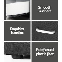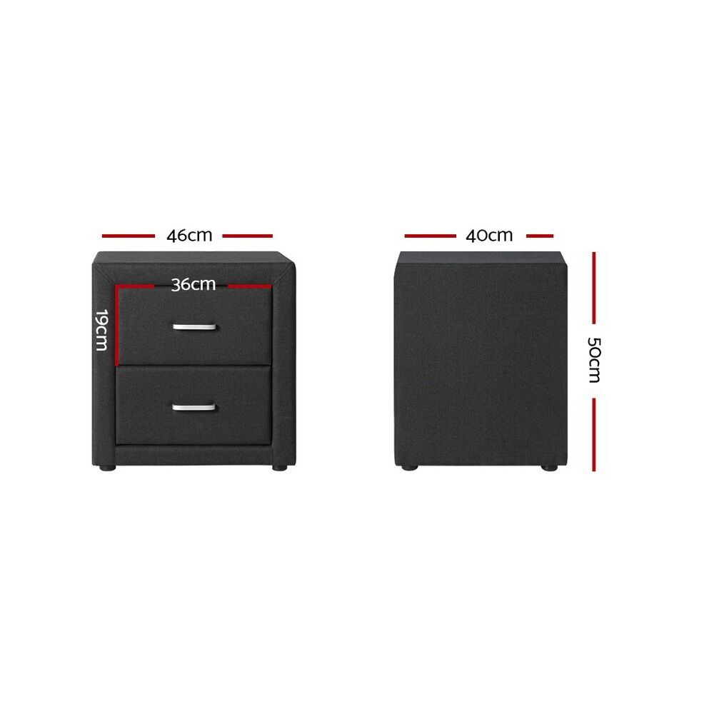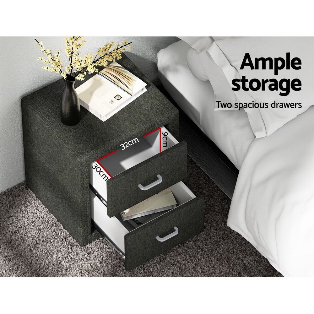 Simply designed with elegant linen fabric, our Artiss Moda bedside table is the perfect furniture to bring a modern style to your bedroom. The practical design consists of two large drawers with plenty of space to store your personal accessories and knick knacks. It features MDF panels upholstered in smooth faux linen fabric with anti-rust coated metal draw runners and contemporary aluminium handles. Too good to be used only in the bedroom? Well, you can also use the bedside table as a side table with drawers to complement your contemporary home decor.