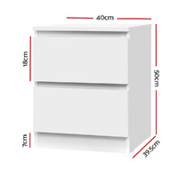 NOW $112.46A useful bedside addition, the Artiss Pepe Bedside Table is elegant and simple with a lasting appeal. Made of 15mm thick particle board, the bedside table is sturdy and durable in every way. Two deep drawers sliding on smooth anti-rust runners provide ample storage space. Better still, the handle-free design gives it a modern vibe that stands out from the mundane. Not least, the finish is impeccable and easy to maintain and clean.