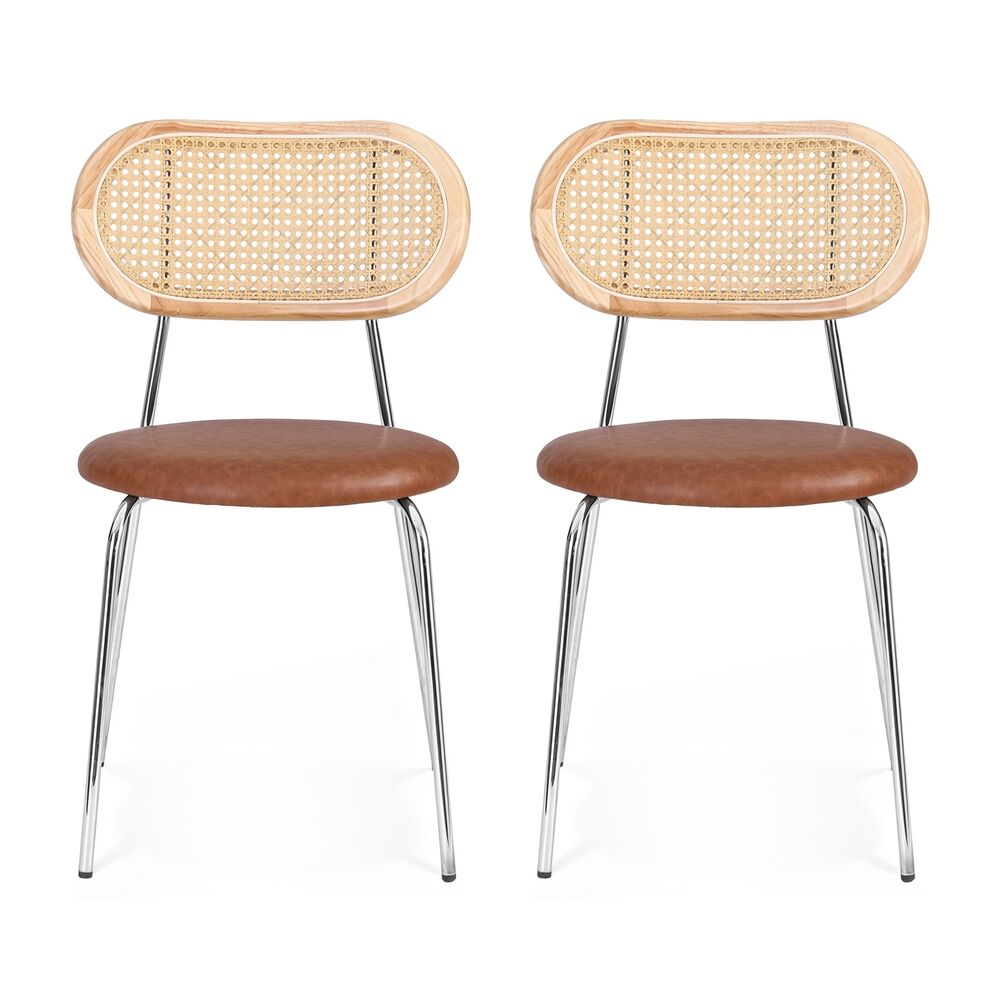 Bring a warm, inviting feel and a touch of retro charm to your home with this striking set of Artiss dining chairs. These chairs perfectly blend materials, featuring a breathable rattan backrest paired with a rich brown PU leather seat.
