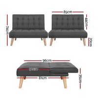 NOW $202.46Snuggle up with our versatile 2-seater Artiss Recliner Sofa Bed. Constructed with a wooden frame and thick seat cushioning, our faux linen upholstered sofa is sturdy in every way. The solid rubber wood legs add a very natural touch to the entire ensemble while also providing excellent support. The backrest has three adjustable reclining positions to let you enjoy your leisure at your preferred settings. This allows the sofa to function as a luxurious 2-seater couch with the upright backrest, or as a multi-seater or ottoman with the backrest laid flat. You can even add on additional sofas for a modular setting and to create a larger sofa (or keep extending for a giant-sized one) that can be instantly transformed into a spare bed for unexpected overnight guests when needed.