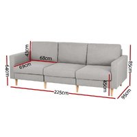 Crafted with a strong eucalyptus wood frame, the Artiss 3 Seater Sofa is durable. Its sophisticated appearance is elevated by the use of faux linen upholstery, offering a stylish look.The extra-wide cushion, filled with high-resilience foam, provides plenty of space for multiple people or for one person to stretch out comfortably. Resting on rubberwood legs, this sofa adds a touch of warmth to any room.