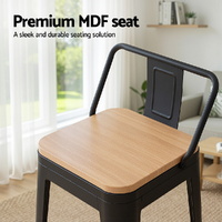 These chic industrial bar stools are designed to complement both modern and rustic interiors. Built with a premium MDF seat and a sturdy metal frame, they ensure durability and a weight capacity of up to 120kg per stool. The stackable design makes them perfect for compact storage, while the powder-coated footrest and splayed retro legs enhance stability and visual appeal. Easy to assemble and equipped with anti-slip floor protectors, these stools are ideal for your kitchen, bar, or dining area.