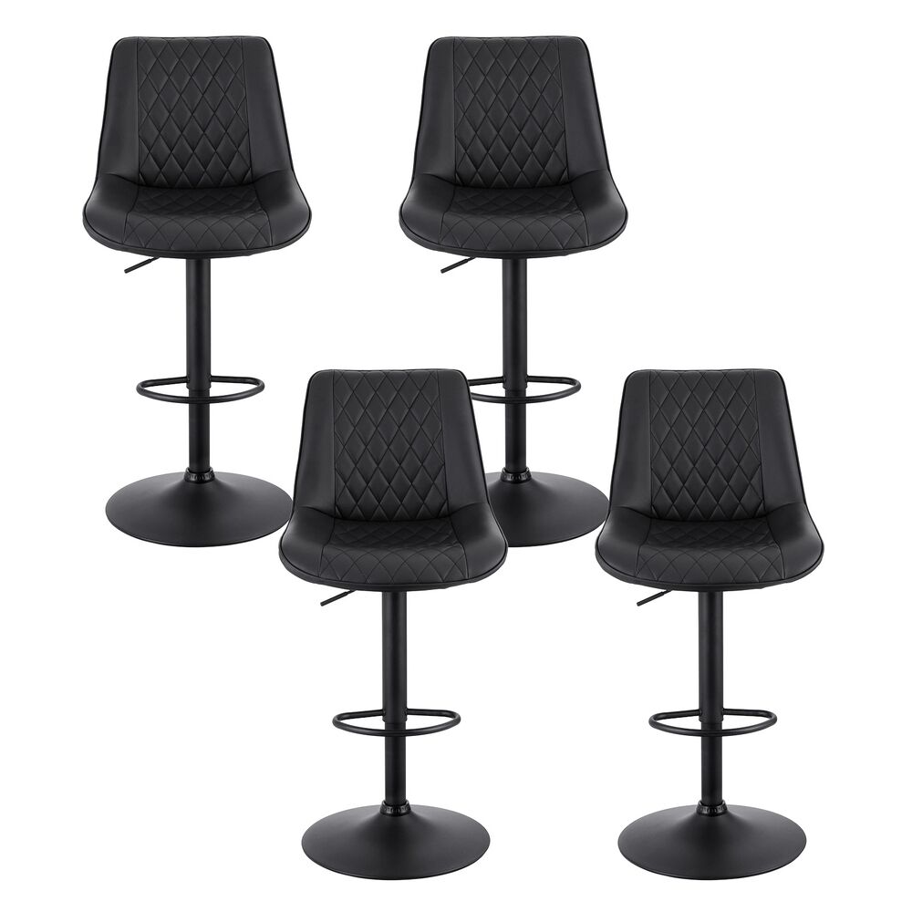 Upgrade your seating with the Artiss Set of 4 Bar Stools, designed to combine style and comfort. Featuring a unique ergonomic diamond outlook, these stools are adjustable from 96-116cm with a reinforced gas lift cylinder for personalized comfort. The premium PU leather seat is soft, durable, and easy to clean, while the sturdy metal construction supports up to 120kg per stool. A semi-circular footrest and anti-slip floor protectors ensure stability and floor safety. Perfect for kitchens, cafes, or pubs, these stools are easy to assemble and elevate any space effortlessly. Add them to your décor today!