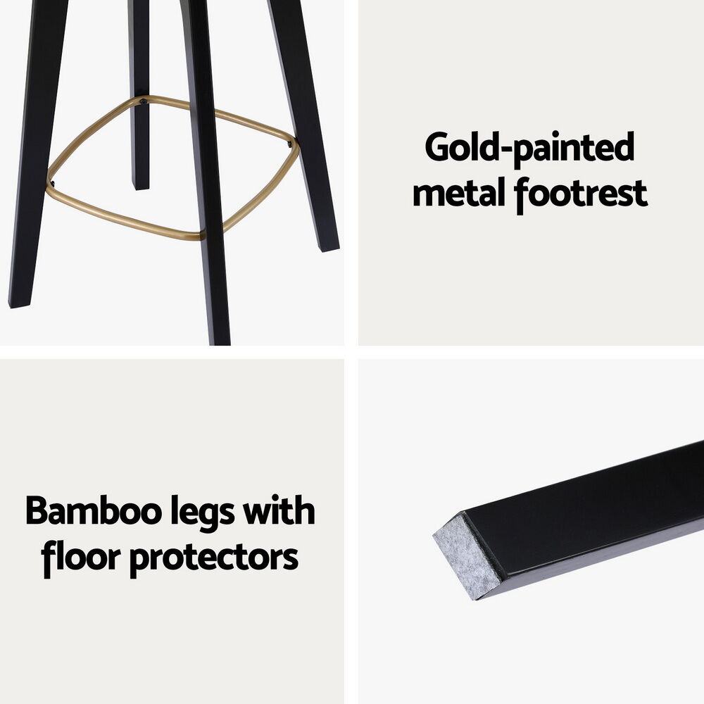 Upgrade your home with these elegant backless rattan bar stools, featuring a stylish two-tone design and a comfortable woven rattan seat. The sturdy bamboo construction ensures durability, while the gold-painted metal footrest adds a touch of sophistication. With a 120kg weight capacity and anti-slip floor protectors, these stools offer reliable stability and safety. Perfect for kitchen counters or bar areas, this set of 4 stools combines functionality with modern aesthetics. Easy to assemble and built to last, they're the perfect addition to your space. Order now and elevate your seating experience!