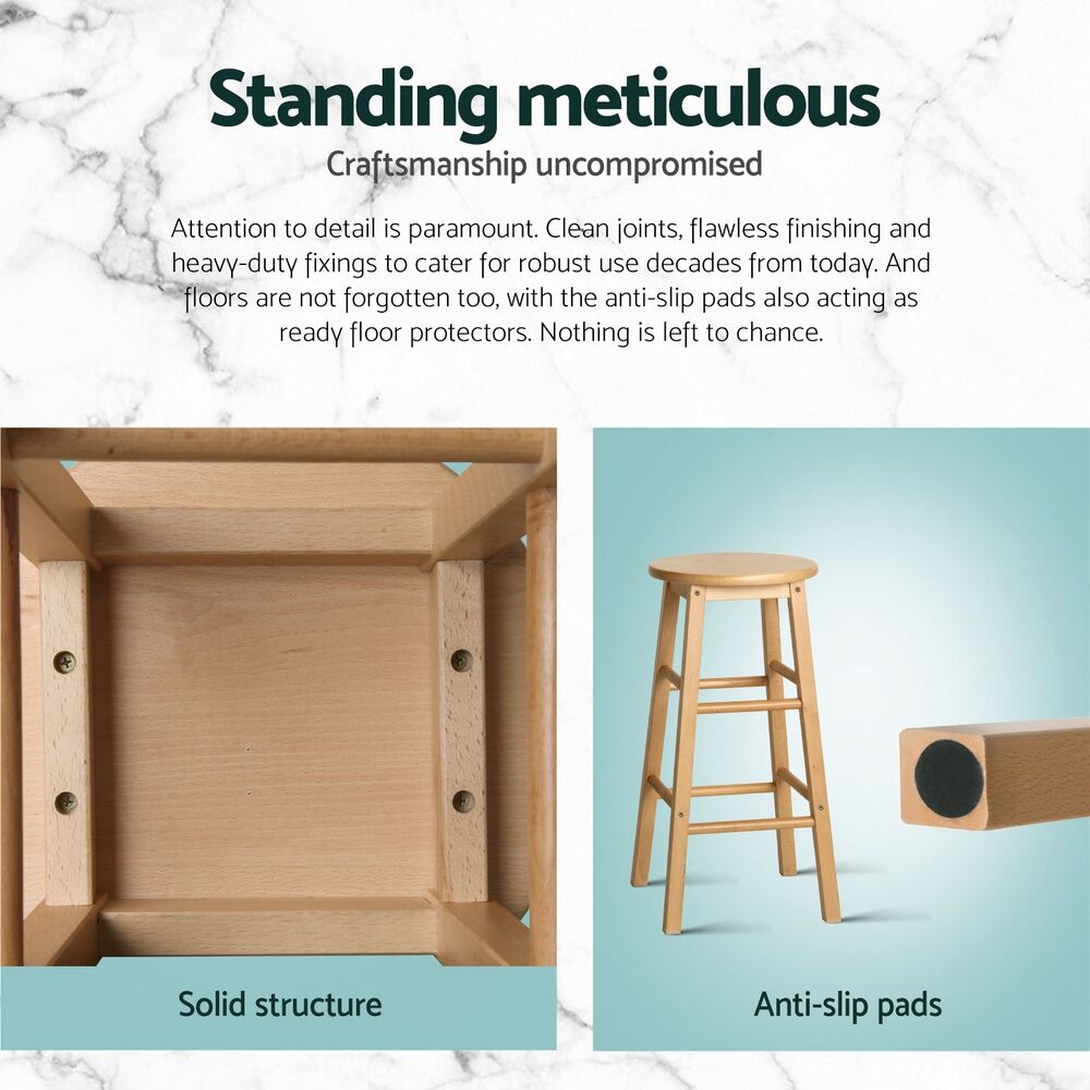 Made from quality beech wood, the Bar Stool is designed with thick seats and legs for a very solid look and feel. And it would not even look out of place in a garage or man-cave for mates to have a good time tossing back a few stubbies or a jam session with the band.