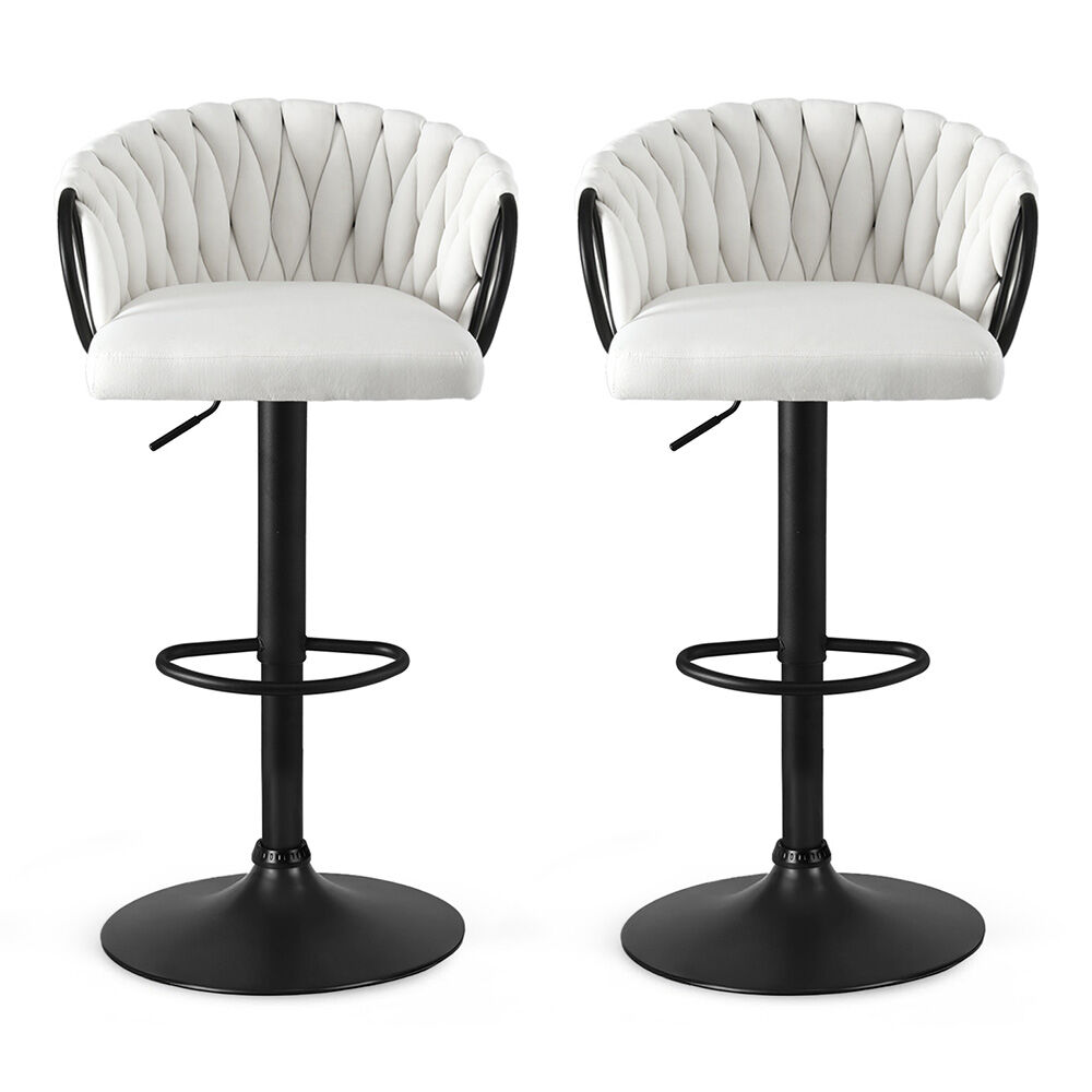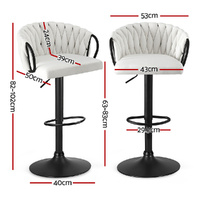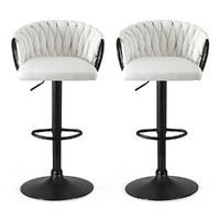 Redefine your seating experience with our set of 2 adjustable velvet bar stools. Featuring an ergonomic woven design and luxurious velvet seats, these stools combine comfort and elegance. The height adjusts effortlessly from 82-102cm, making them ideal for kitchen counters, bars, and islands. Sturdy metal construction and a reinforced gas lift cylinder ensure durability, supporting up to 120kg per stool. Designed with metal armrests and a semi-circular footrest, they offer superior comfort while protecting your floors with anti-slip protectors. Elevate your home with these stylish and functional bar stools today.