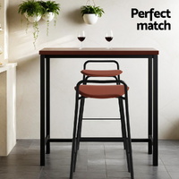 The Artiss Bar Table combines industrial charm with robust functionality. Its smooth MDF top and reinforced steel frame, finished in durable powder coating, ensure longevity and a rock-solid stance. The sturdy T-shape design, heavy-duty fixings, and anti-slip feet keep it firmly in place, even with heavy use. Pair it with the Artiss Bar Stools for a timeless look. These stools feature foam-padded PU seats, reinforced metal frames, and powder-coated finishes for durability. With stylish footrests and anti-slip protectors, they offer comfort and stability, making them perfect for modern kitchens, bars, or commercial spaces. Assembly required.