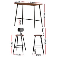 Upgrade your space with this Bar Table Stools Set, combining industrial strength with modern style. The bar table features a reinforced steel frame, a beautiful wood grain tabletop, and a sturdy T-shape structure with a 120kg weight capacity. The bar stools have a solid seat top, reinforced steel frame, and a removable backrest for versatility. Heavy-duty fixings, anti-slip feet, and smooth edges ensure stability and safety. With easy assembly, this durable set is perfect for kitchens, bars, or dining areas.