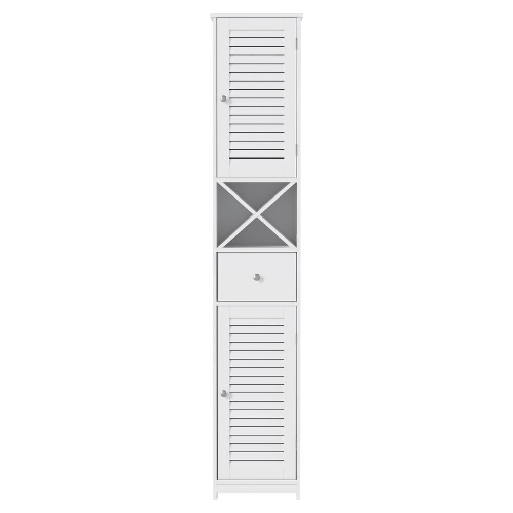 This versatile storage cabinet offers smart organisation beyond the bathroom. Its tall, slim profile fits perfectly in corners and tight spaces, while the adjustable shelves and unique X-shape shelf adapt to all your storage needs. In the bathroom, it neatly organises towels and toiletries; in the living area, it stores books and wine bottles; in the entryway, it keeps essentials tidy. The painting finish ensures durability in humid conditions, and the elegant louver doors add stylish design. This cabinet combines functionality with contemporary design for multiple living spaces.