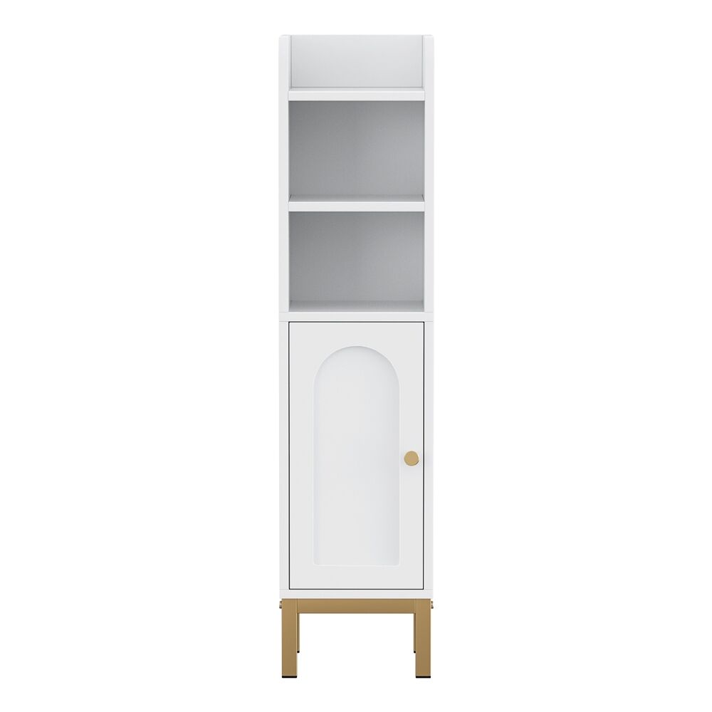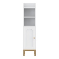 NOW $69.26Elevate your bathroom organization with this ultra-slim storage cabinet, expertly crafted to maximize space in narrow Australian homes. Measuring just 20x20x84cm, its space-saving profile tucks seamlessly beside toilets or vanities while the elegant arched door and gold-toned legs add boutique charm. Enjoy versatile 3-tier storage: display potted plants on the open top shelf, adjust the middle compartment for toiletries of any height, and conceal spare toilet rolls in the enclosed bottom cabinet. Built from MDF with reinforced metal legs and an included anti-tip safety kit. Effortless tool-free assembly makes this durable, family-friendly organizer perfect for rentals or compact spaces—transforming clutter into curated style with uncompromising functionality.