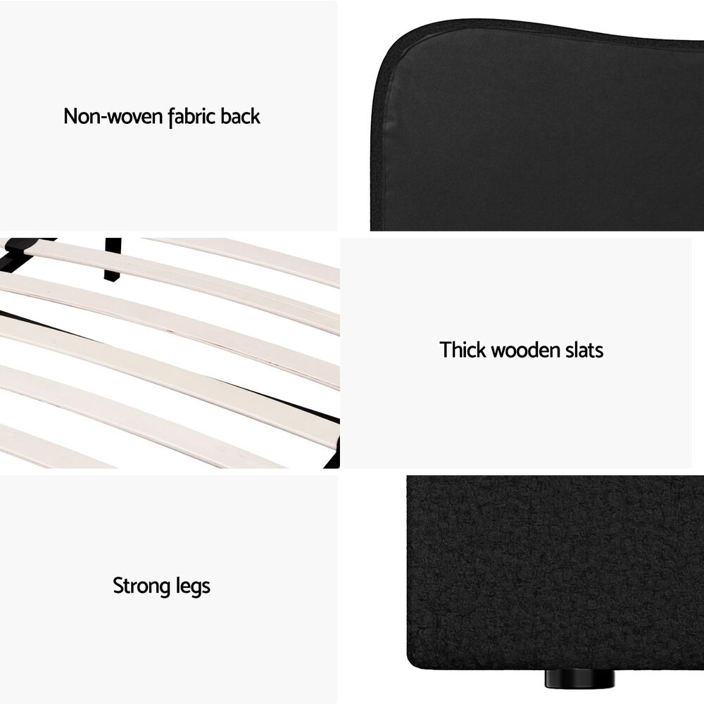 NOW $247.46Introducing our elegant Artiss bed frame: upholstered in boucle fabric, featuring wooden frame with slat support, padded headboard, smooth edge finish, and sturdy metal connectors for a blend of style and functionality in your bedroom.