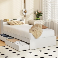 It's easy to sleep well on the Artiss Aura Bed Frame. Made from thick 15mm and 18mm particleboard with 12mm plywood slats and a white paper finish, the bed frame is designed for long-lasting use and longer-lasting sleep. The thick plywood slats and centre beams provide total support, and noise-free use, and improve the life of your mattress. It features a multifunctional design that allows you to use the bed for storage and to charge your phone overnight. Two drawers with smooth castor wheels can be installed on the left or the right for convenient storage. The headboard has smooth edges and plenty of room for your bedroom essentials. It also features two USB charging ports connected to a 200cm cable for convenience. While you power down for the night, you can power up with the Aura Bed Frame from Artiss.