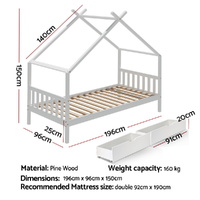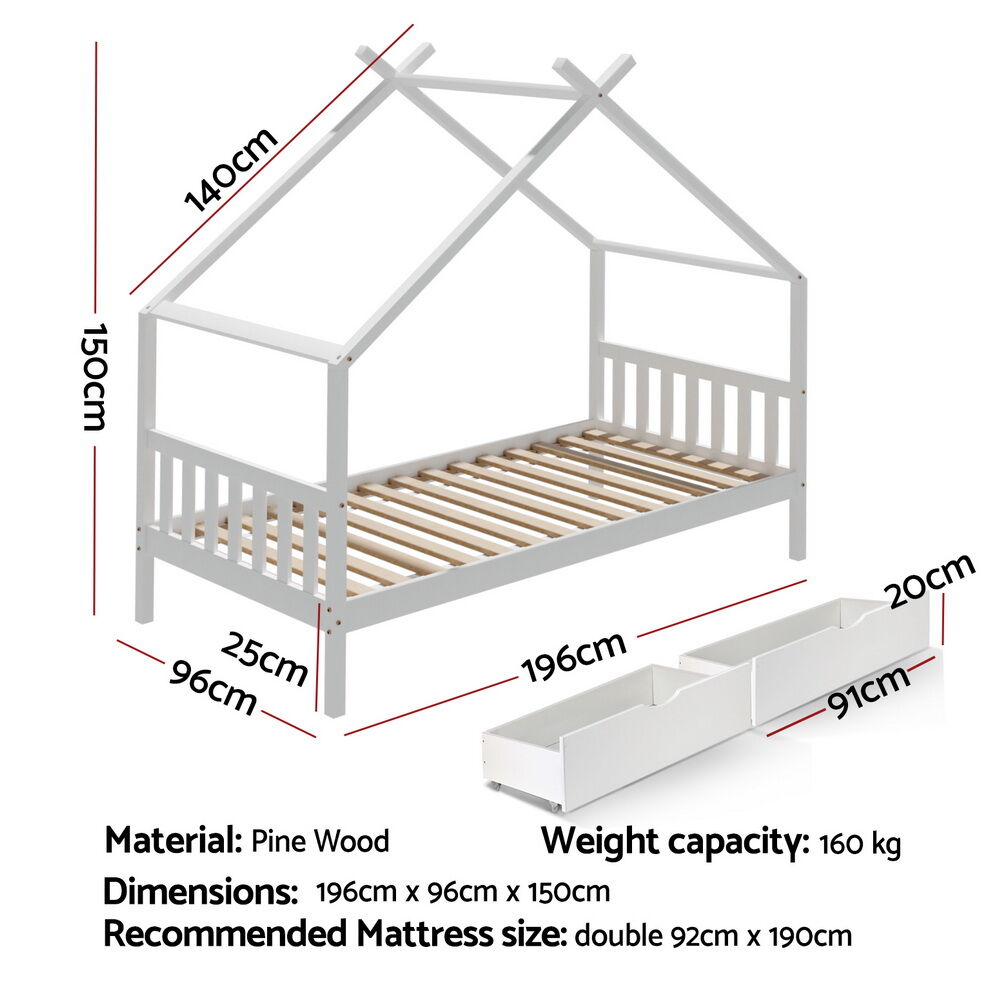 Kids bed frame with 2 storage drawers