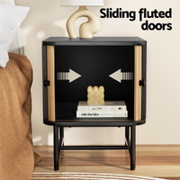 The Artiss Boris Bedside Table combines style and function with a modern two-tone design. Featuring sliding fluted doors, this nightstand offers both a sleek aesthetic and practical storage solutions. Its spacious interior allows for convenient organisation of your bedside essentials, while the rounded front edges add a soft, contemporary touch to your bedroom. Crafted with metal knobs and sturdy metal legs with feet pads, this bedside table provides durability and stability. It's easy to clean and maintain, making it an ideal addition to your space. This nightstand is designed to enhance your room's decor while offering efficient storage and long-lasting performance.