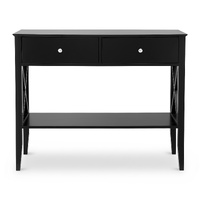 Bring stylish charm and modern function to any space with the Artiss Console Table. Featuring 2 spacious drawers with vintage metal handles, smooth runners, and anti-toppling device, this console table offers ample storage. Its 2-tier open shelf design suits entryways, living rooms, cafés, or salons. Easy to clean and maintain, it's perfect for everyday use.