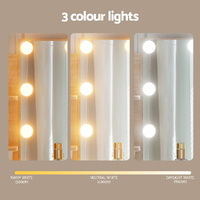 Feel like a star straight out of Hollywood with the Artiss Dressing Table. Made from quality MDF board with a melamine finish, the table is built to last. The Hollywood-style makeup mirror is surrounded by bright LED bulbs for the perfect illumination. Choose from warm, neutral and daylight white light so you can always look stage-ready. The vanity features open shelves that you can use to display trinkets or beauty products. Two generous storage drawers with silver handles open smoothly on anti-rust runners, giving you instant access to your beauty essentials. A foam-padded PU leather stool allows you to sit comfortably while applying make-up or skincare and can be neatly tucked away when not in use. Easy to install and even easier to maintain, you'll love getting ready for the day in front of your new Artiss Dressing Table.
