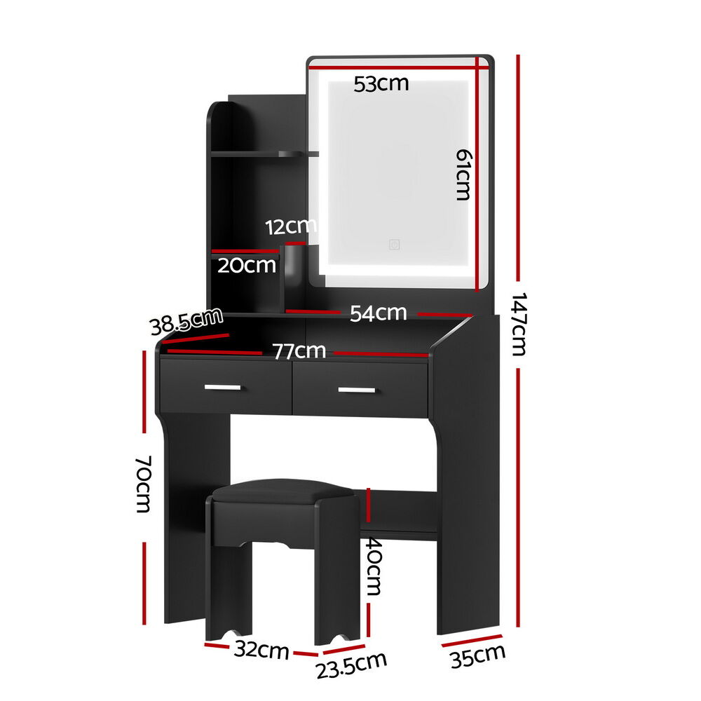 Upgrade your beauty routine with the Artiss LED Dressing Table. Featuring a Hollywood-style makeup mirror with an LED stripe, this vanity offers three adjustable light modes��warm, cool, and natural��for perfect lighting every time. The two spacious drawers ensure your beauty essentials stay neatly organised, while the anti-drop panel provides added safety and stability. The foam-padded stool adds comfort for extended use, and the sleek, easy-to-clean design ensures low maintenance. Ideal for bedrooms or professional settings, this modern vanity is the perfect blend of functionality and style.
