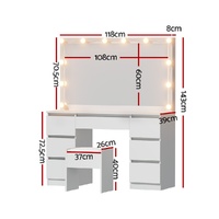 $305.49Elevate your beauty regimen with the Artiss LED Dressing Table, featuring salon-grade illumination that adapts to any lighting condition. The adjustable 3 LED colour lights ensures true-color makeup application, complemented by a large mirror that provides a clear reflection for grooming and makeup application. Thoughtful details abound - from the anti-tip strap to the floor protectors. 7 spacious drawers enable categorized storage with dustproof privacy. Complete with a foam-padded PU leather stool, this contemporary set combines professional functionality with minimalist aesthetics, making it the perfect centerpiece for modern bedrooms or dressing areas.