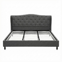 This Artiss King Bed Frame combines a wingback headboard with grey linen upholstery and high-density foam padding. Features a sturdy steel frame with reinforced bars, heavy-duty connectors, and a wooden slat base. Includes adjustable centre support. Fits standard Queen mattresses (203x183cm). Modern design for bedrooms. Overall dimensions: 214x196x104cm.