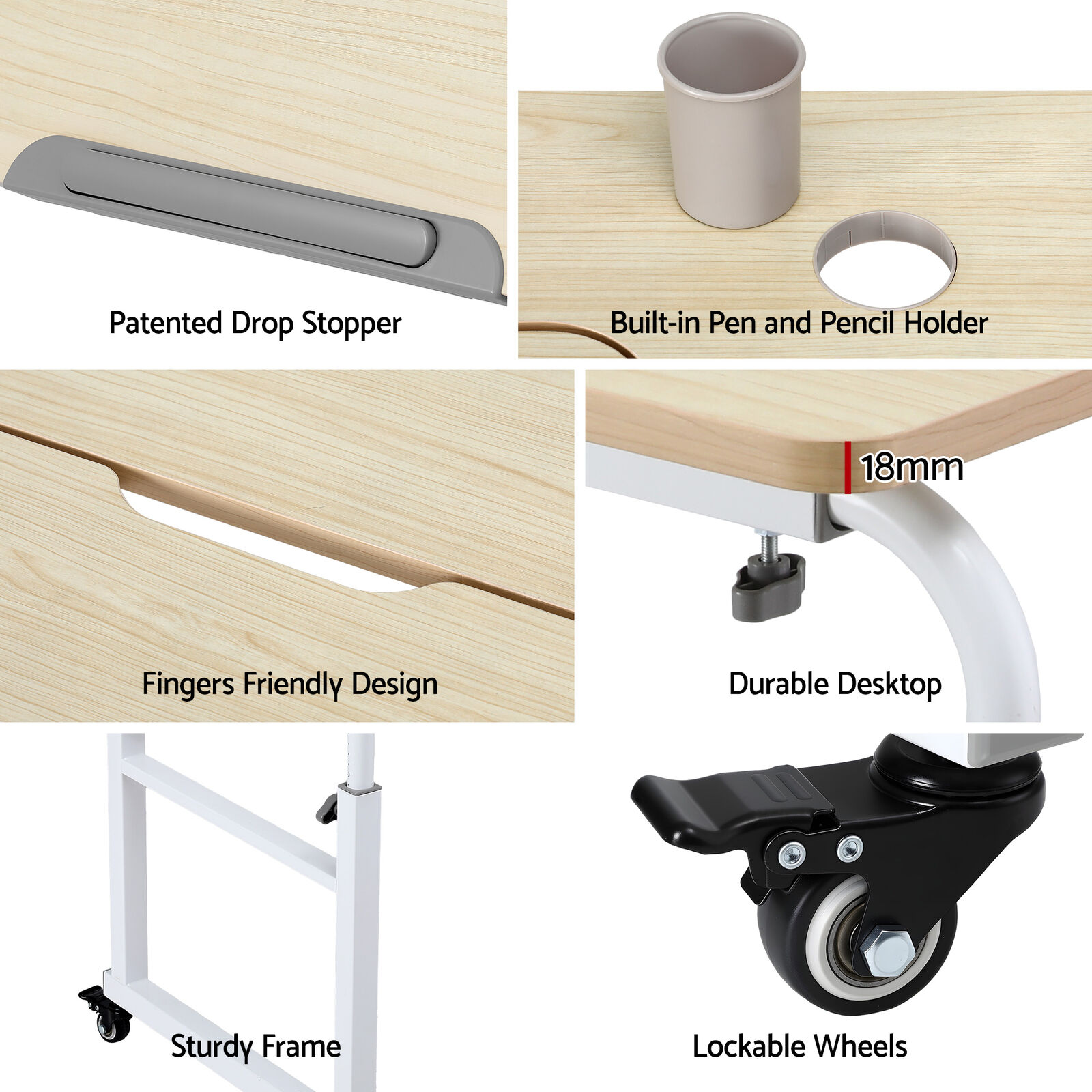 Work comfortably anywhere with the Artiss Laptop Desk. Featuring a fully adjustable height and width frame, it slides easily over beds or sofas. The split desktop tilts up to 60 degrees for ergonomic drawing or typing, while lockable wheels ensure stability. An ideal mobile home office solution.