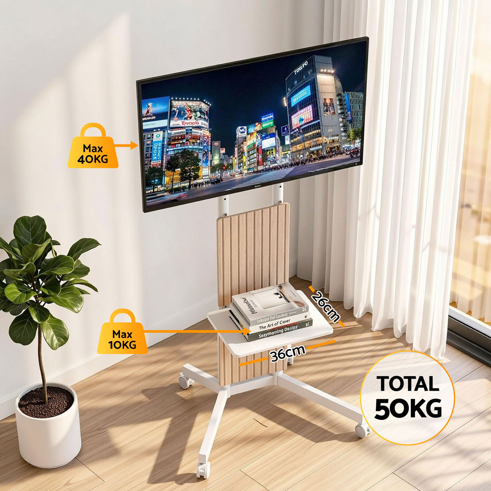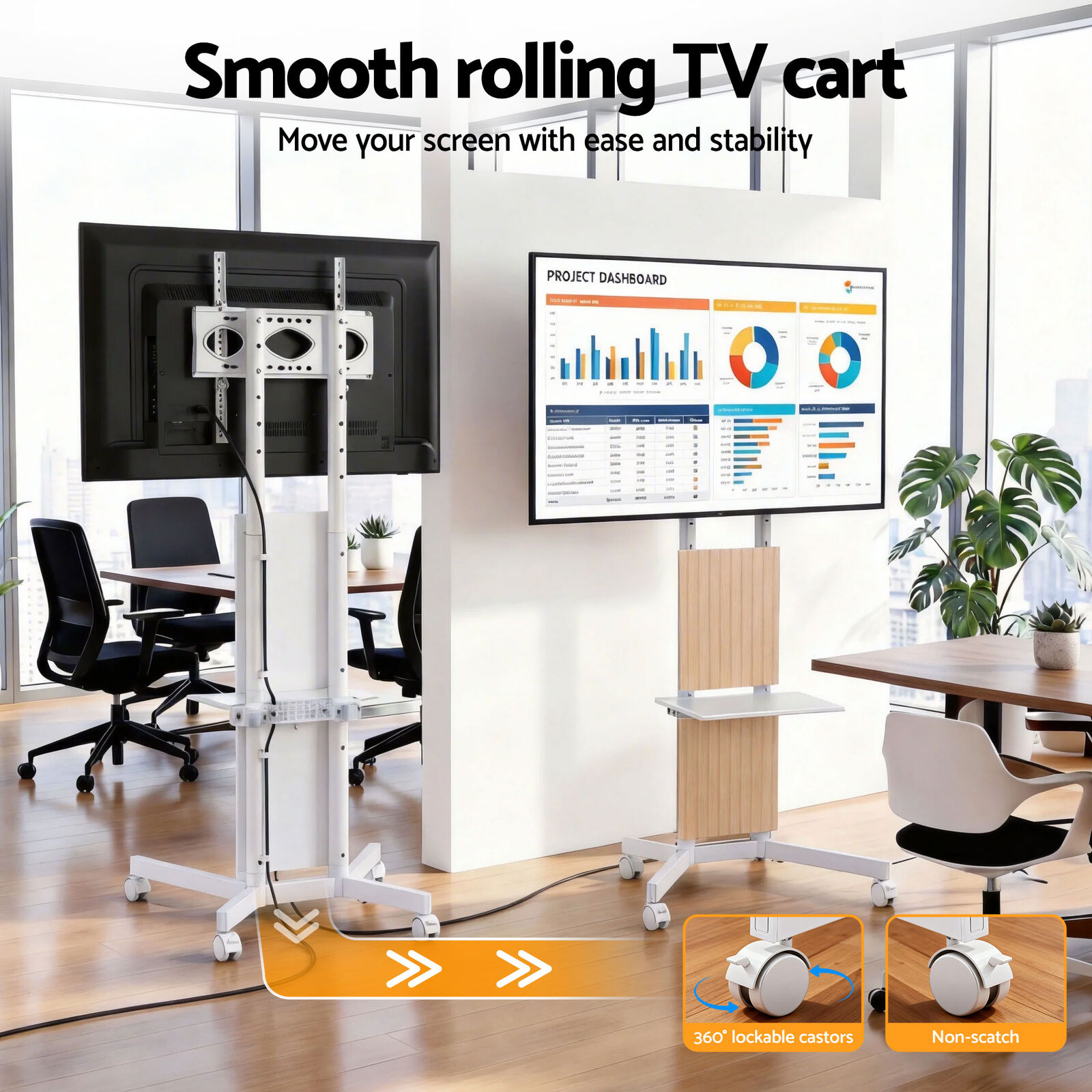 Transform your entertainment setup with the Artiss Mobile TV Stand. Perfect for modern homes, offices, and flexible workspaces, this rolling trolley gives you the freedom to watch TV in any room without the hassle of wall mounting.Strength Meets Style Constructed with a strong steel frame, this unit is built to handle TVs from 32 to 65 inches with a weight capacity of up to 50kg. It combines industrial durability with practical design, featuring a solid MDF tray that provides a sturdy platform for your AV equipment, laptop, or gaming console.Convenience on Wheels Whether you are presenting in a meeting or gaming in the bedroom, the lockable caster wheels ensure smooth mobility and stability. Complete with adjustable height settings and a smart cable management system to keep wires organized, the Artiss TV stand is the ultimate solution for versatile viewing.