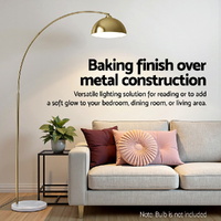 Illuminate your space with the Artiss Modern Arched Floor Lamp, a perfect blend of elegant design and functional brilliance. This lamp's sleek, curved frame extends over your sofa or reading chair, providing a focused, downward light ideal for reading or creating a cozy, inviting ambiance. Crafted with a premium brass finish and anchored by a heavy-duty marble base, it offers both a sophisticated look and exceptional stability. The tall, standing design ensures it makes a statement in any room, whether it's your living area, bedroom, or home office. With its simple, clean lines, this lamp seamlessly complements any contemporary or modern decor, bringing style, stability, and light to your favorite corner.