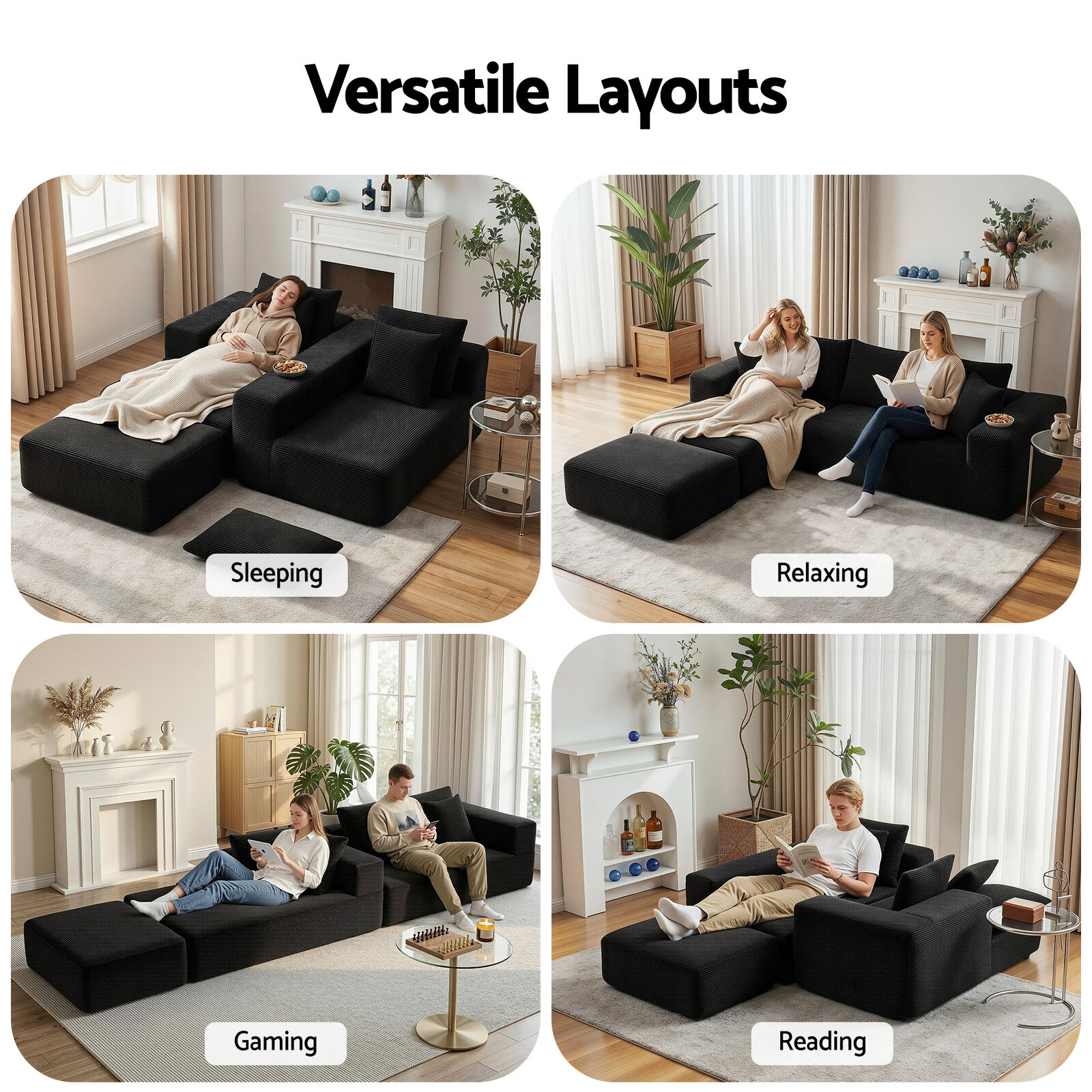 Upgrade your home effortlessly with our Premium Modular Corduroy Sectional. Designed for modern living, this sofa combines versatile functionality, heavy-duty durability, and an unbelievably plush seating experience—all delivered right to your door without the typical furniture-moving headaches.
