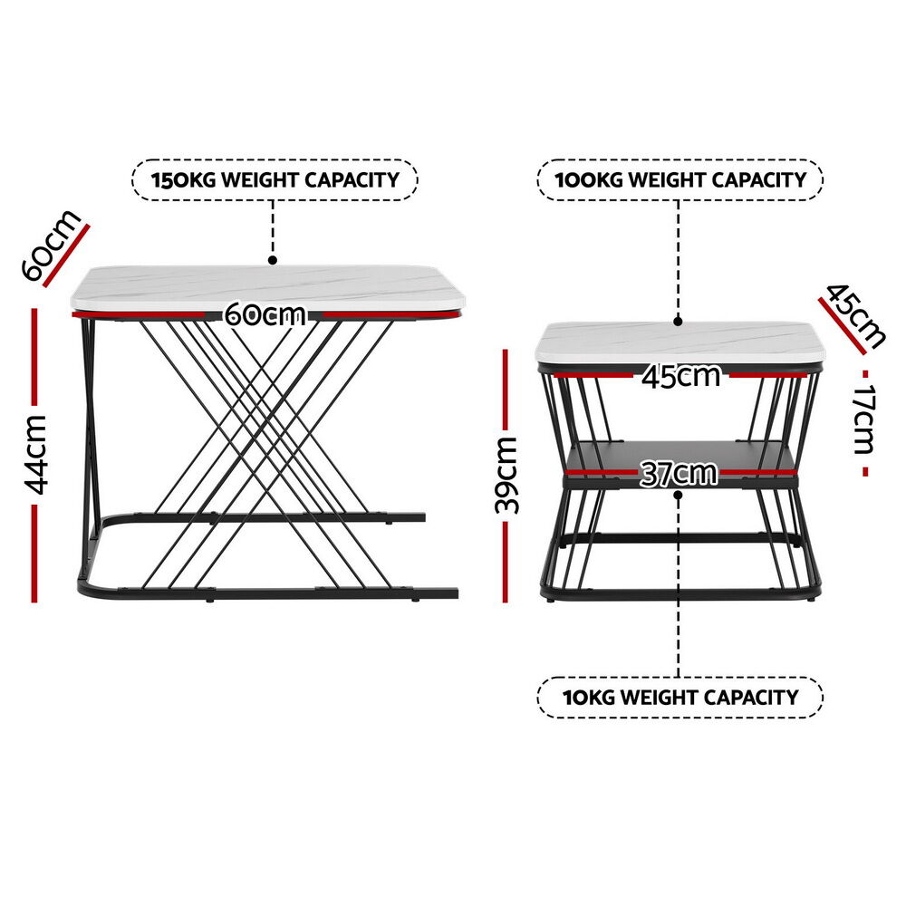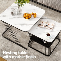 Upgrade your living space with the Artiss Nesting Coffee Table Set of 2 featuring a chic marble-effect tabletop and durable metal frame. This nesting tables are perfect for modern homes, offering space-saving functionality with a stylish flair. The rounded edges enhance safety, while the smooth surface ensures easy cleaning. Whether you need a coffee table for your living room or a side table for your apartment, this versatile tables deliver on both style and practicality.
