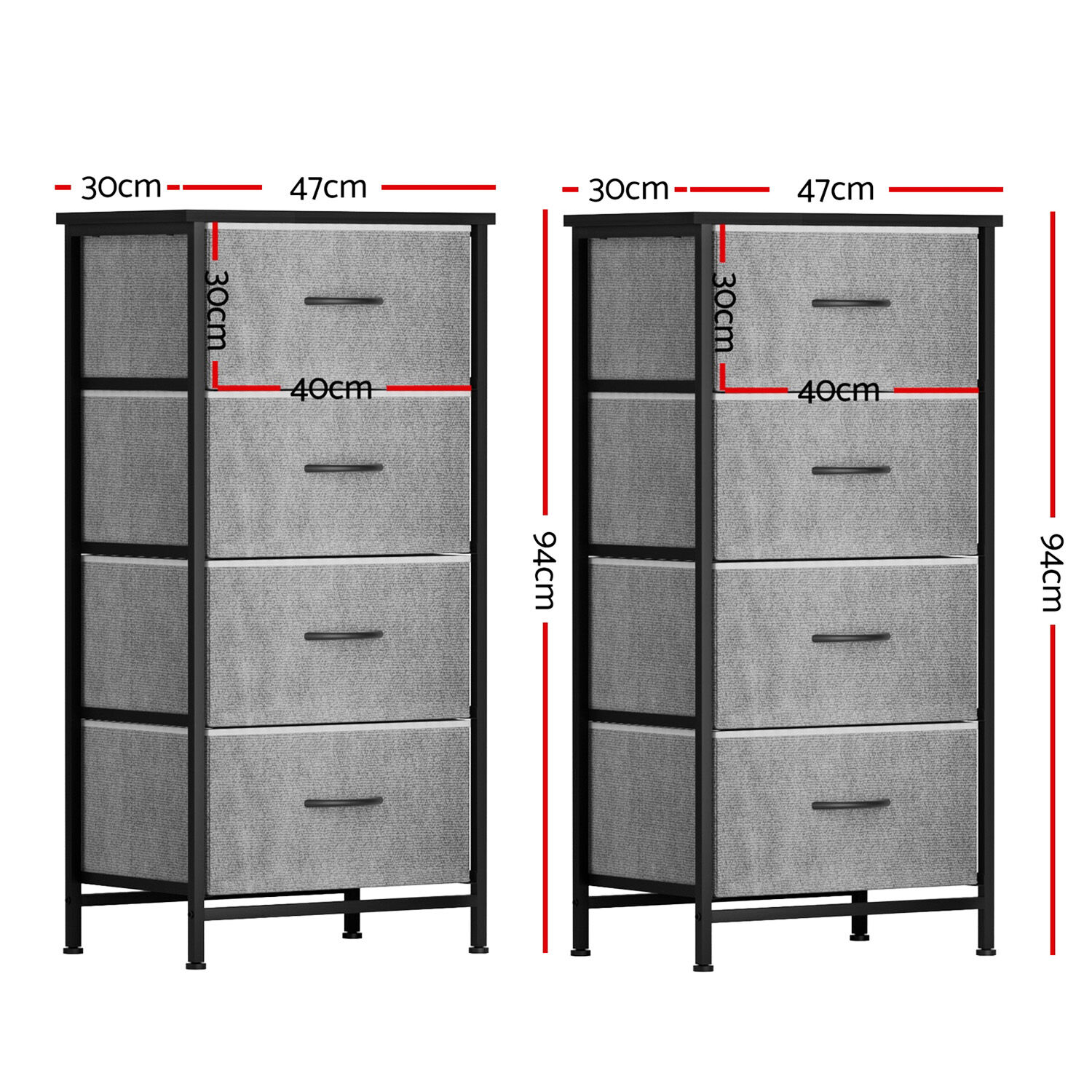 The Artiss Chest of Drawers offers the perfect blend of style and functionality, making it an ideal storage solution for any space. With four spacious drawers, this compact unit provides ample storage for everything from clothing to living room essentials. The sturdy MDF tabletop is perfect for displaying decorative items, while the durable metal tube frame ensures long-lasting use. The breathable non-woven fabric lining in the drawers helps keep your items organised and protected, and the smooth ABS handles allow for easy operation.