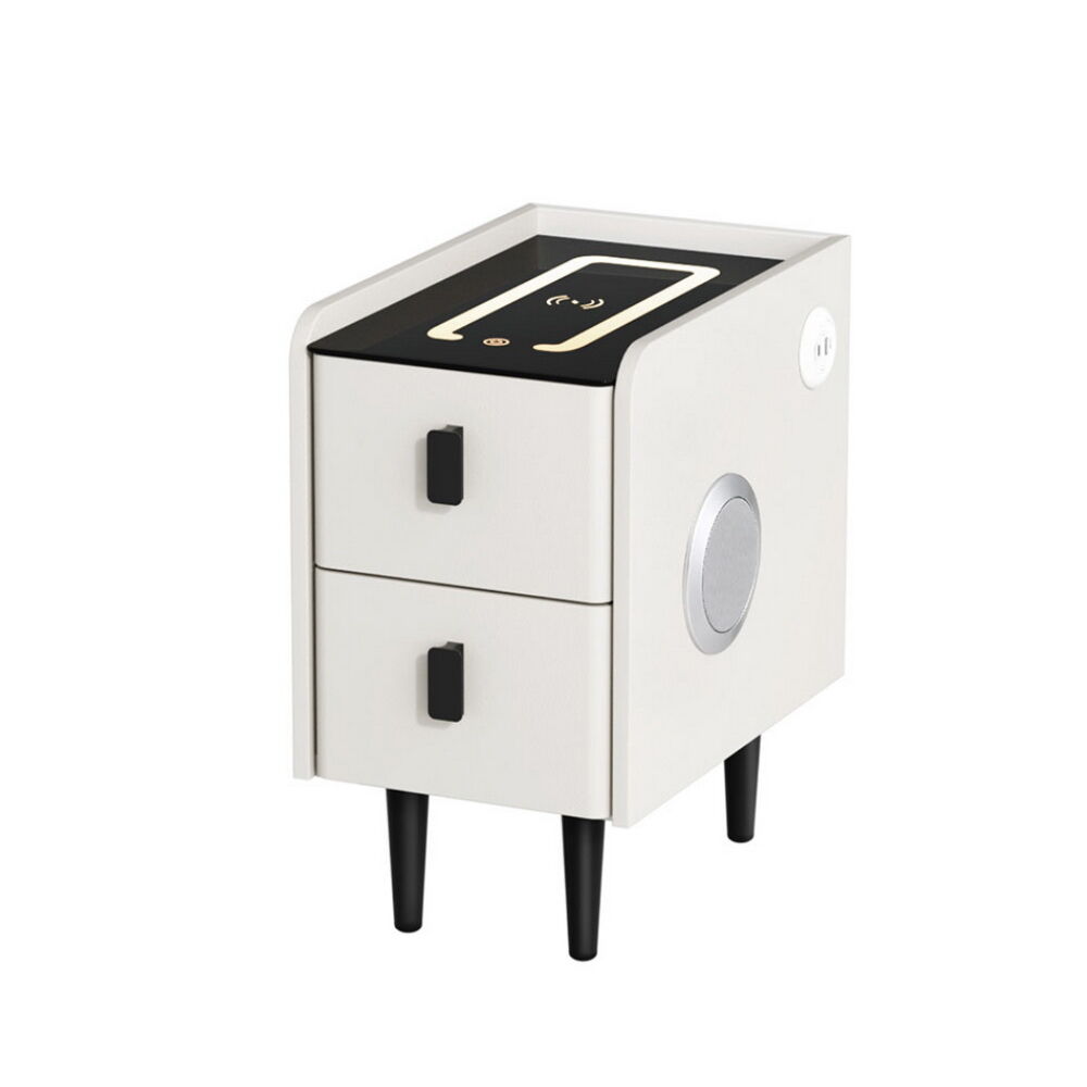 NOW $124.03Upgrade your living space with the Artiss Aida Smart Bedside Table, where functionality meets style. This modern table not only lets you charge your phone wirelessly or via USB but also features a built-in Bluetooth speaker for seamless music streaming. Crafted from premium materials, including high-quality MDF upholstered in PU leather and topped with tempered glass, the Aida is as durable as it is stylish. It boasts two spacious drawers with sleek metal handles, perfect for storing your night-time essentials. With both USB and type C charging ports, you can power your devices whether wired or wireless. The adjustable light-up charging panel lets you create the ideal ambience for relaxation. Supported by sturdy metal legs with anti-slip pads, the table stays securely in place while protecting your floors.