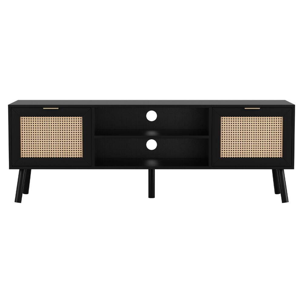 Artiss premium TV unit combines 2 side cabinets with 2-tier middle shelves, featuring golden metal handles and soft-close hinges. Crafted from E1-grade 15mm particle board with paper veneer finish, this sturdy black unit (150Lx40Dx52H/cm) supports 40kg tabletop capacity. Includes anti-tip kits, cable management holes, and solid wood feet with pads. Effortless assembly and wipe-clean surfaces ideal for living room entertainment setups.