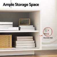 Crafted with full-floor design to minimise dust buildup, this 3-cabinet TV unit combines practical storage and modern aesthetics. Features smooth-glide doors, 2 adjustable shelves, and 2 cable management holes for tidy AV setups. Engineered with reinforced MDF frame and steel bracketing, our entertainment unit safely holds 60kg+ electronics while resisting warping. Includes tool-free assembly system and scratch-resistant melamine surfaces - ideal for Australian homes seeking durable TV cabinet stand solutions.