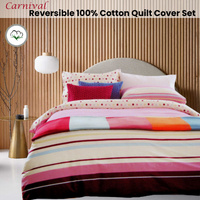 Add a touch of colour to your bedroom with this Carnival 100% Cotton Reversible Quilt Cover Set by Atmosphere. This is fully reversible printed set features stripe pattern in pink, berry, aqua, yellow, and blue with gorgeous polka dots print on cream background on reverse. Set is made from ultra smooth and soft quality 100% cotton fabric.