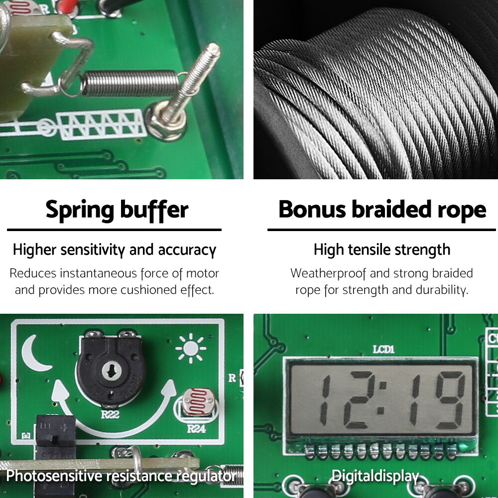 Need to let the chickens out early every day? Or to close the coop on time to keep predators and vermin out? Our Giantz Automatic Chicken Coop Door Control takes all the hassle away and lets you do the tasks easily and timely. Designed to operate on a timer and a light sensor that automatically adjusts for summer and winter day length, the coop door control uses an efficient motor with braided rope for strength and durability. The door and rails are made of alumumium for longlasting use and rust prevention. It also has a spring buffer to cushion the impact of the door operations. The control utilises a photosensitive resistance regulator and also features a digital display for easy monitoring. Powered by four AA-sized battery, the coop door control has a low battery warning light for convenient use. The entire control is weatherproof and all mounting screws are provided for a fast set-up.