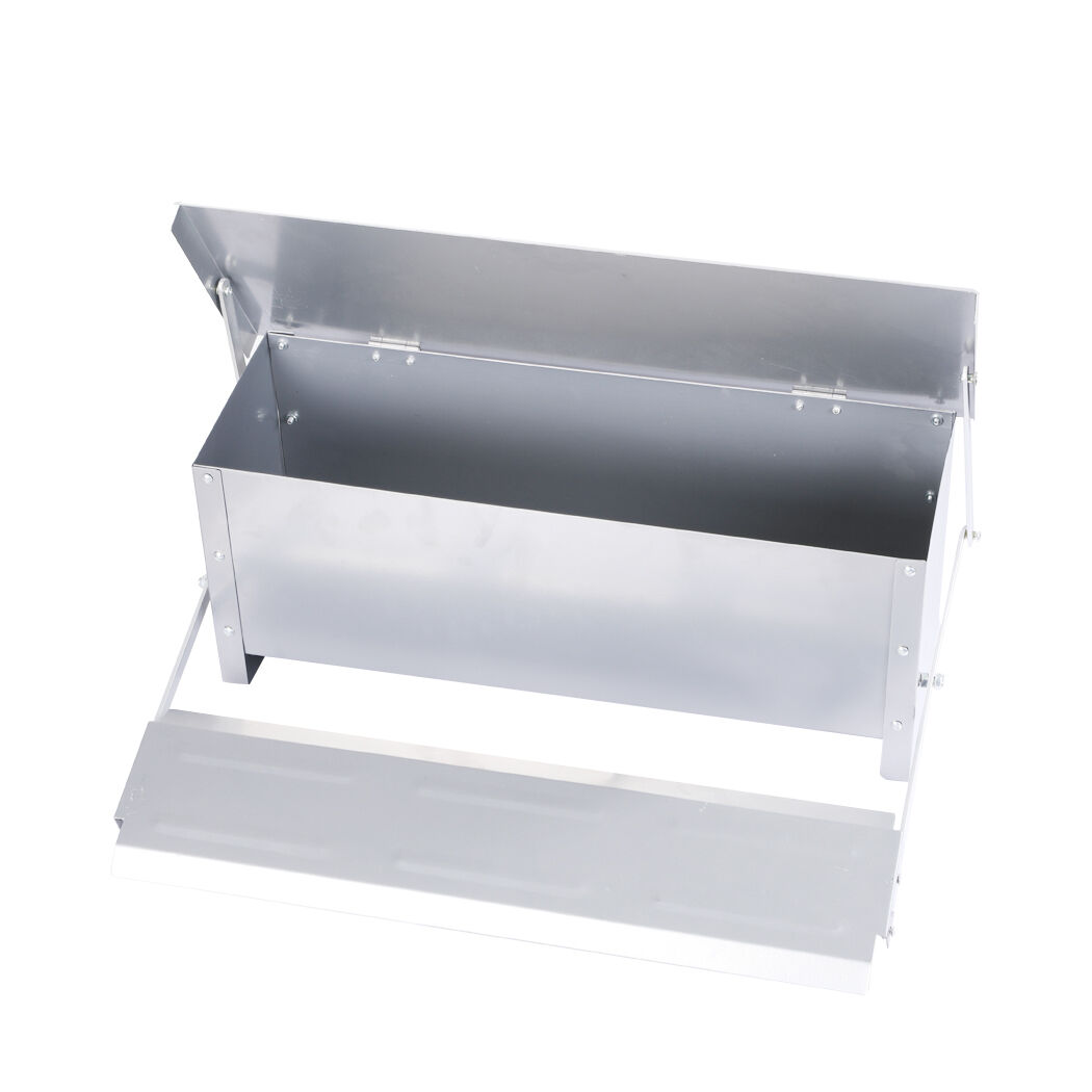 Experiencing troubled feeding time? Eliminate all the chicken feeding troubles with our innovative Automatic Chicken Feeder. Save your precious time and energy. Designed to feed your adorable chickens in timed intervals. Set it up anywhere as required, fill the container with chicken feed, and your work is done. It will perform the crucial feeding process without any delay. It eases your everyday feeding tasks with minimal effort. A minimal weight equivalent to a regular-sized chicken is required for the automatic feeder to start processing. This creative feature keeps other trespassers such as wild birds, rats, and mice from accessing food container. No more wastage of chicken feed.Made from high-quality galvanized iron. A special rust-proof galvanized coating is provided on the entire body to provide active resistance towards the water. Effectively keeps all the food inside clean and fresh. A solid and durable construction helps withstand long term and regular use. Equipped with very large-sized container to hold up to 7.5L of feed. To access the food container a minimum of 500g weight is required. Very easy to assemble with simple instructions. Economic and very low on maintenance.Feeding your chicken strategically and efficiently. A perfect and ideal choice.