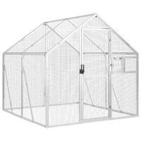 This aviary provides a cosy and comfortable place for your birds to fly and play safely. Sturdy frame: Aluminium metal is lightweight and strong. It's resistant to corrosion with a self-protecting oxide layer. Thanks to the sturdy aluminium construction, this bird aviary is built to last.Wire mesh gird: The budgie cage is equipped with wire mesh grids that prevent mischief and unexpected accidents. In addition, they also allow you to observe your birds daily and guarantee your birds a wide field of view and enough fresh air.Ample activity room: The parrot cage provides your birds with ample activity room to walk around, play and fly around with ease. Besides, it is also suitable for other small animals such as rabbits, ducks, chickens, geese, etc.Lockable door and window: The hinged door with a lockable latch system of the large bird cage ensures extra security and safety for your birds. The large parrot cage also has a lockable window for easy feeding.
