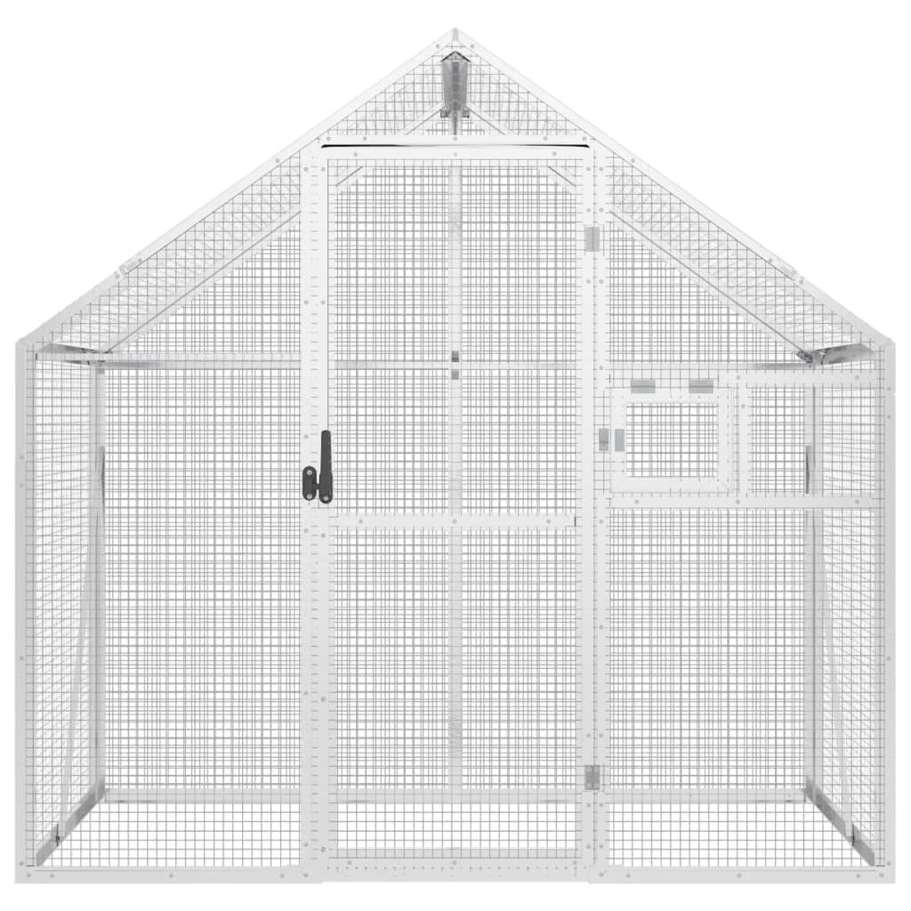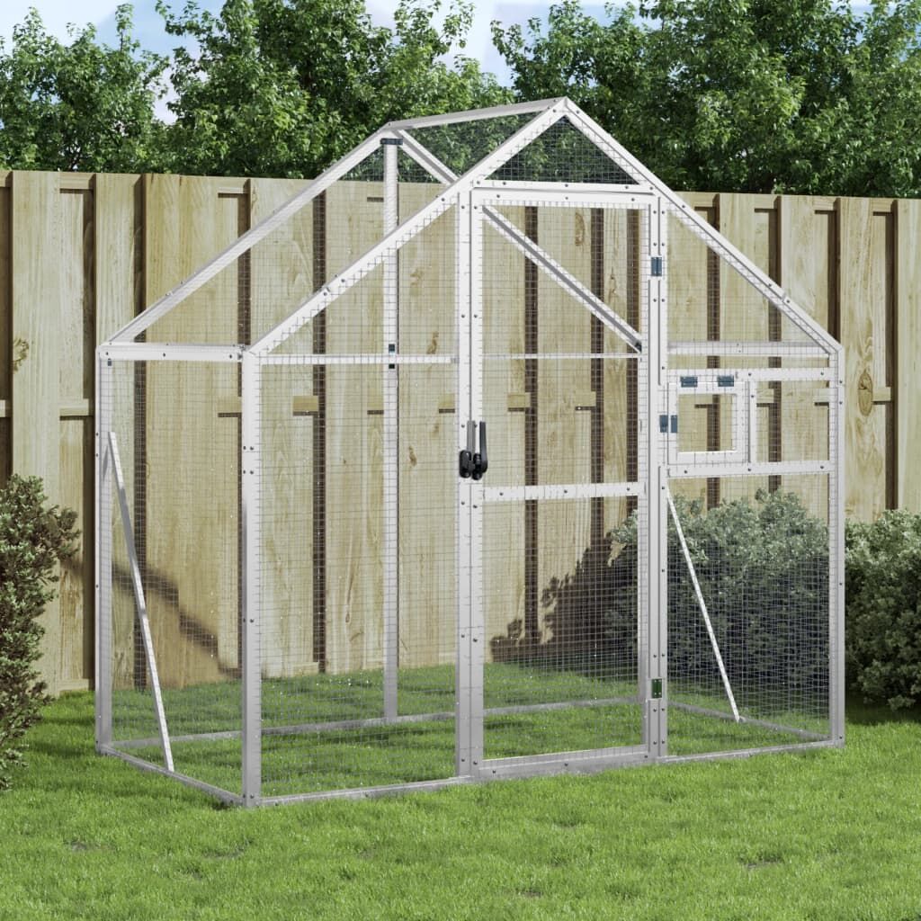 This aviary provides a cosy and comfortable place for your birds to fly and play safely. Sturdy frame: Aluminium metal is lightweight and strong. It's resistant to corrosion with a self-protecting oxide layer. Thanks to the sturdy aluminium construction, this bird aviary is built to last.Wire mesh gird: The budgie cage is equipped with wire mesh grids that prevent mischief and unexpected accidents. In addition, they also allow you to observe your birds daily and guarantee your birds a wide field of view and enough fresh air.Ample activity room: The parrot cage provides your birds with ample activity room to walk around, play and fly around with ease. Besides, it is also suitable for other small animals such as rabbits, ducks, chickens, geese, etc.Lockable door and window: The hinged door with a lockable latch system of the large bird cage ensures extra security and safety for your birds. The large parrot cage also has a lockable window for easy feeding.