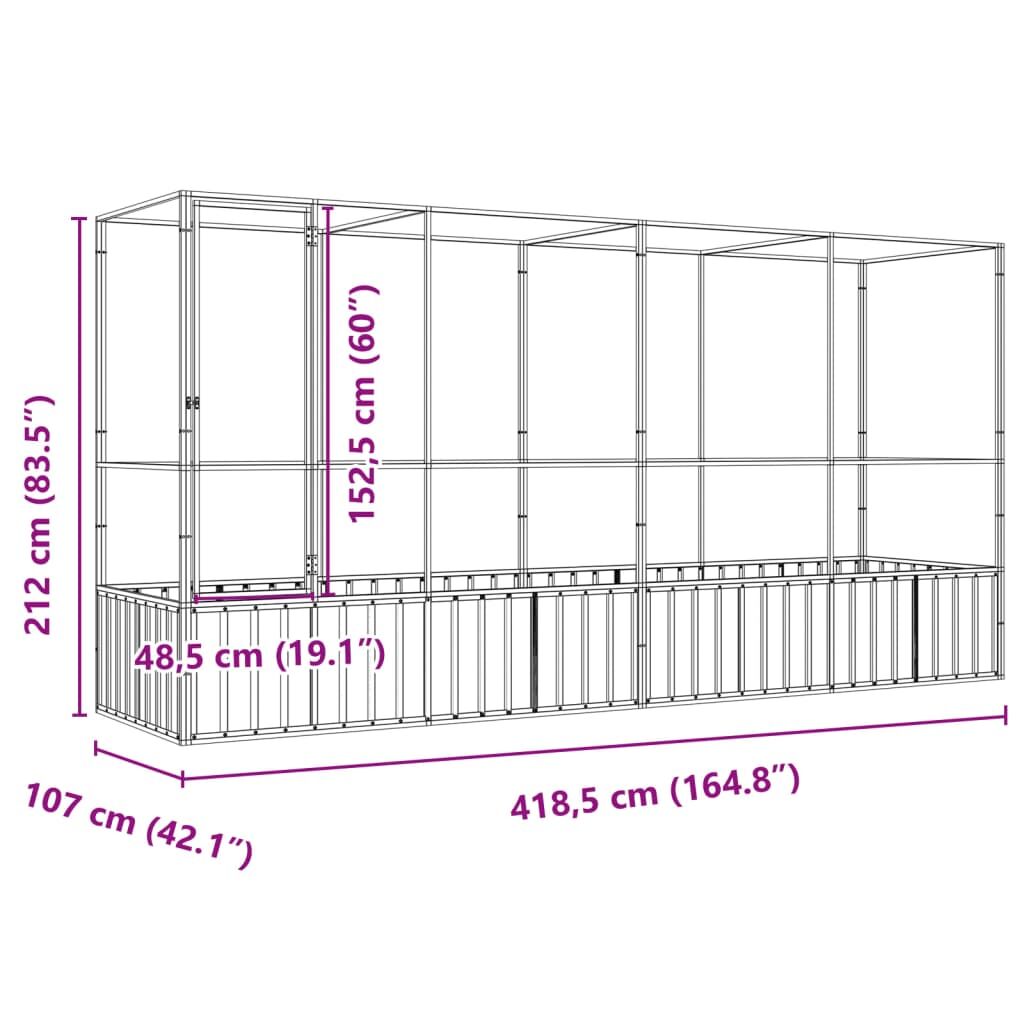 This aviary with extension provides a cosy and comfortable place for your birds to fly and play safely. Sturdy frame: Steel is an exceptionally hard and strong material. It offers sturdiness and stability. Galvanisation provides better protection against corrosion and is useful for products that'll be used outdoors as well as in harsh environments. Thanks to the sturdy galvanised steel construction, this bird aviary is built to last.Steel mesh grid: The budgie cage is equipped with steel mesh grids that prevent mischief and unexpected accidents. In addition, they also allow you to observe your birds daily and guarantee your birds a wide field of view and enough fresh air.Ample activity room: The parrot cage provides your birds with ample activity room to walk around, play and fly around with ease. Besides, it is also suitable for other small animals such as rabbits, ducks, chickens, geese, etc.Lockable door: The hinged door with a lockable system of the large bird cage ensures extra security and safety for your birds.