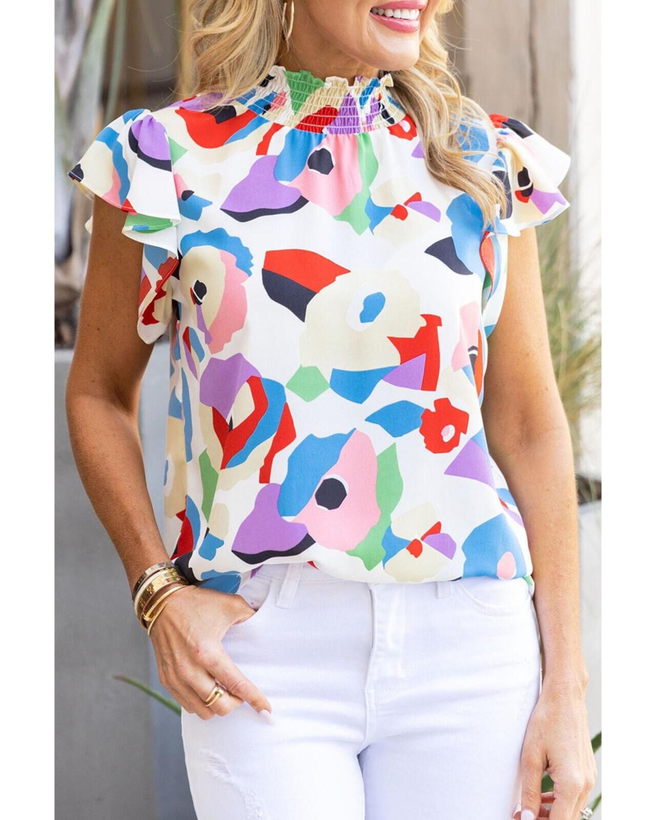 Azura Exchange Abstract Print Ruffle Sleeve Smocked Blouse