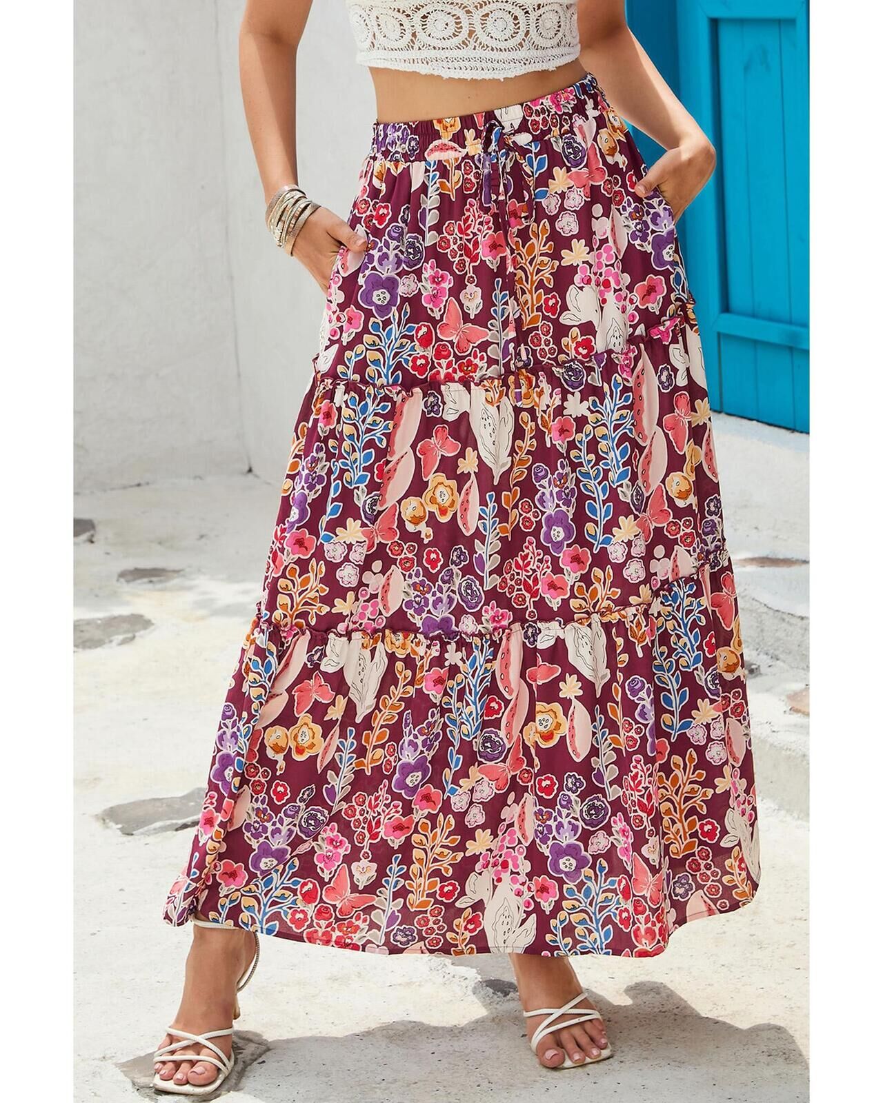 Azura Exchange Boho Floral Print High Waist Maxi Skirt