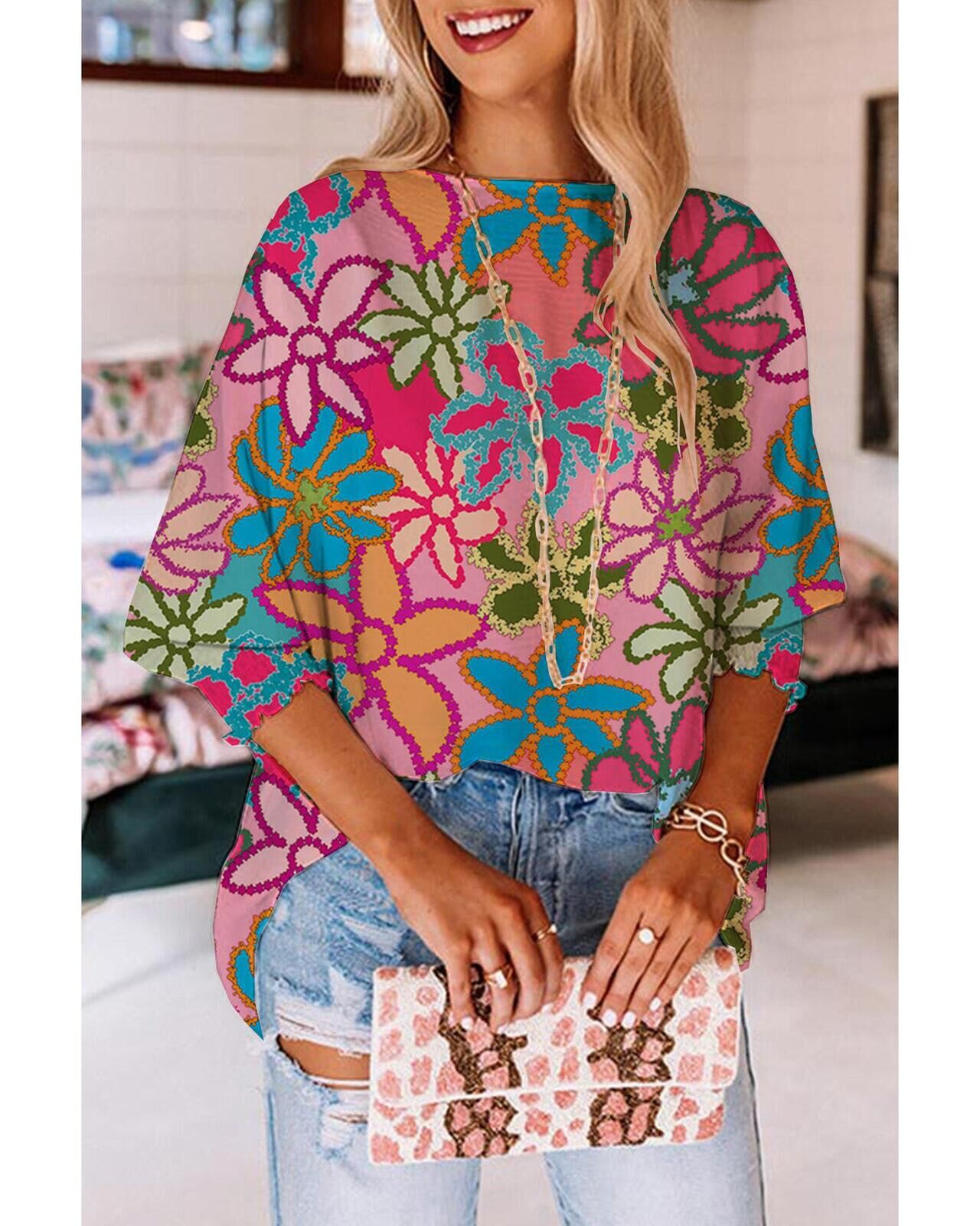 Azura Exchange Bracelet Sleeve Floral Print Blouse