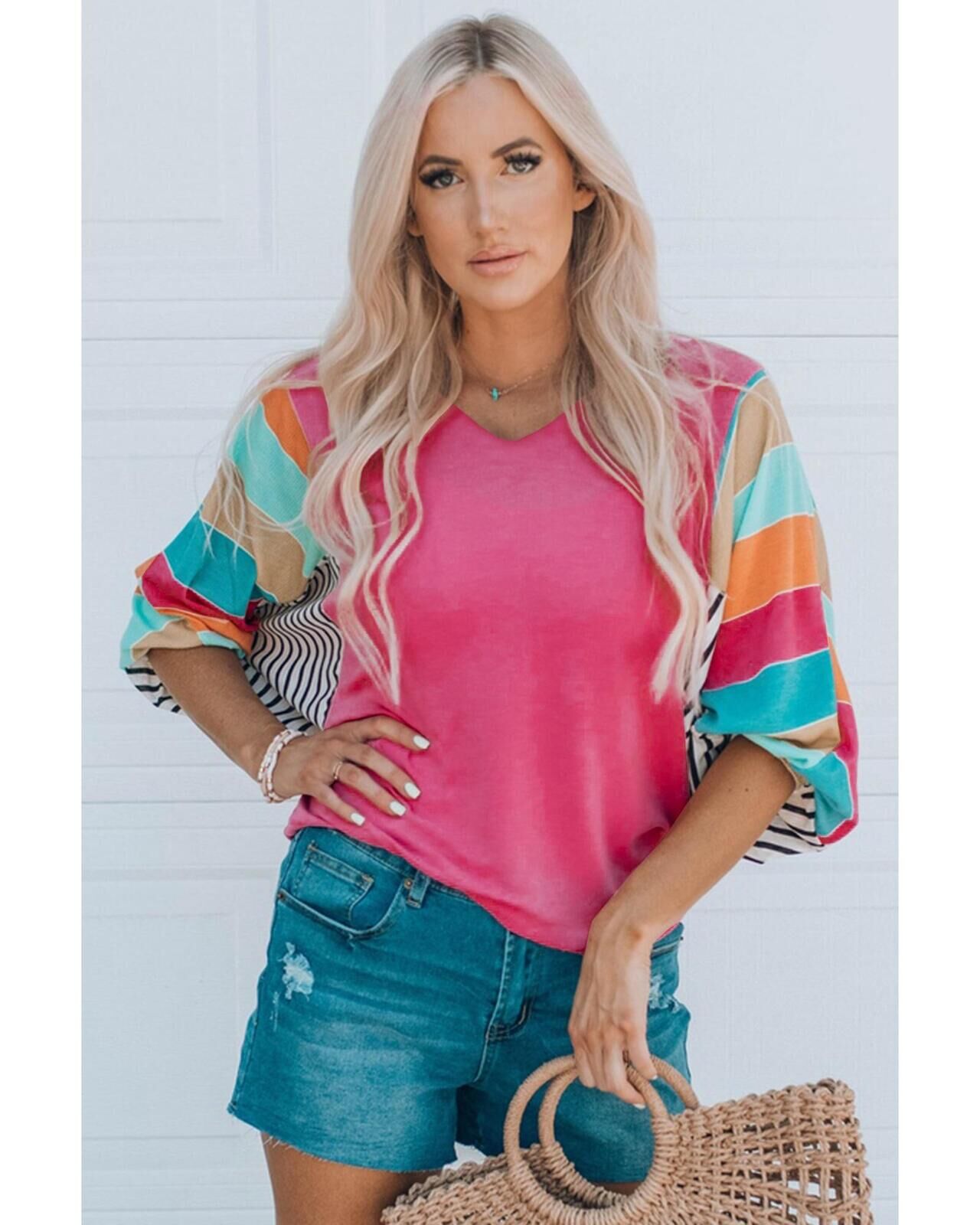 Azura Exchange Bubble Sleeve Stripe Color Block Top