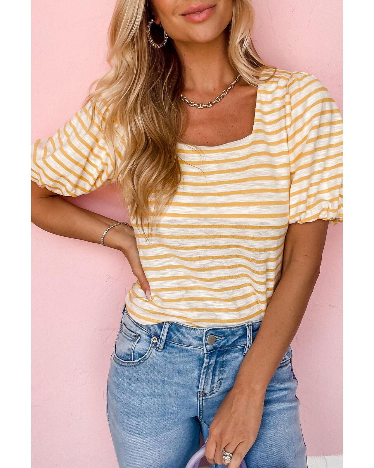 Azura Exchange Bubble Sleeve Stripe Square Neck Top