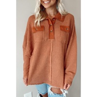 Azura Exchange Button Contrast Trim Waffle Knit Top
