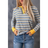 Azura Exchange Button Neck Striped Knit Long Sleeve Top