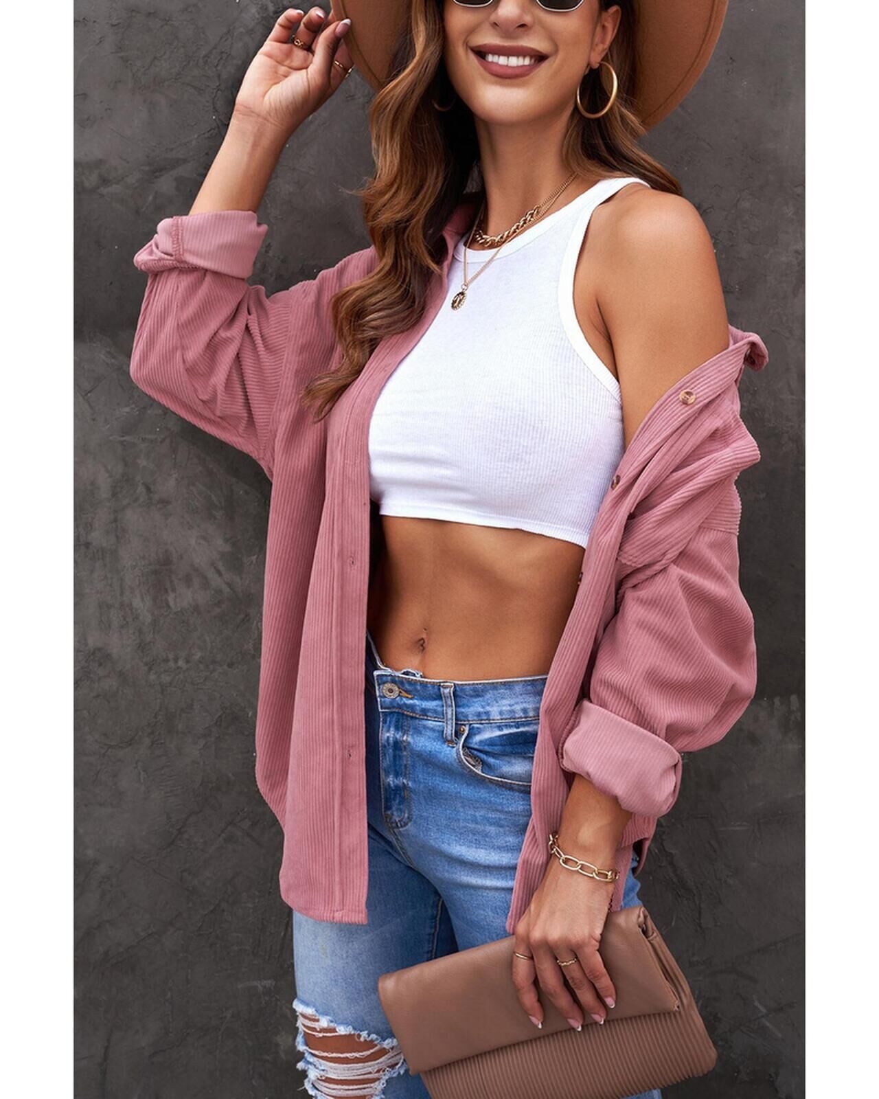 Azura Exchange Button Pocket Corduroy Shirt