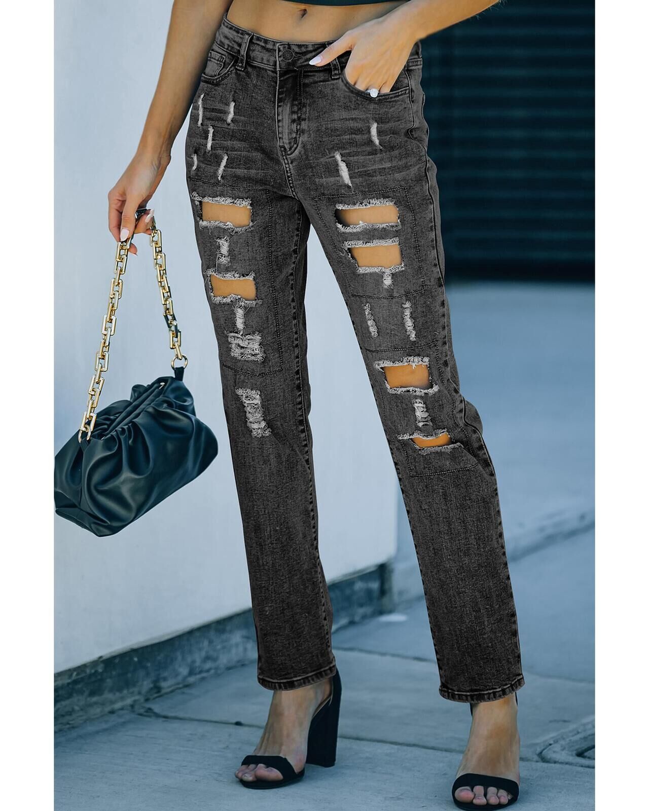 Azura Exchange Buttoned Pockets Distressed Jeans