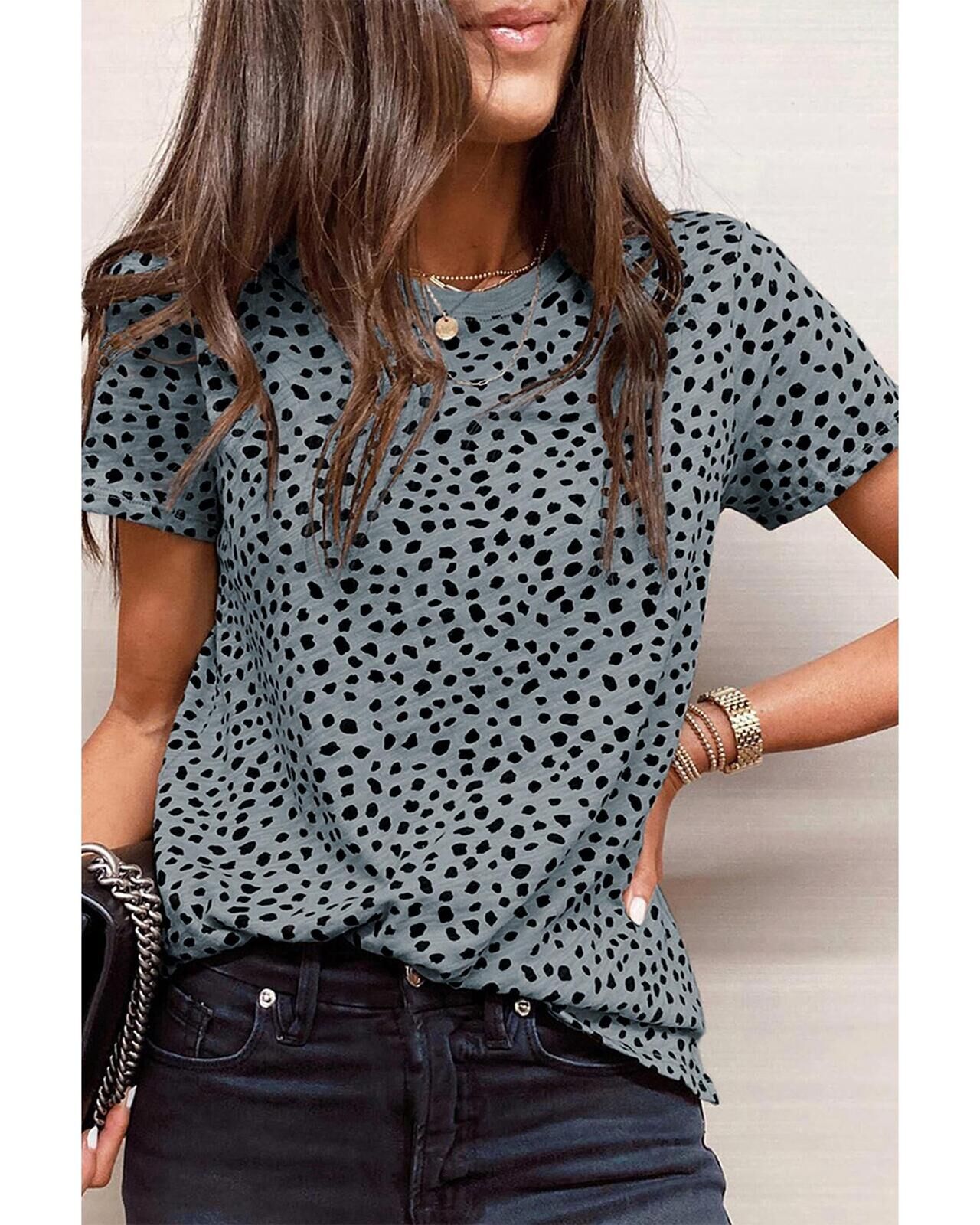 • Stylish Cheetah Print O-neck Short Sleeve T Shirt