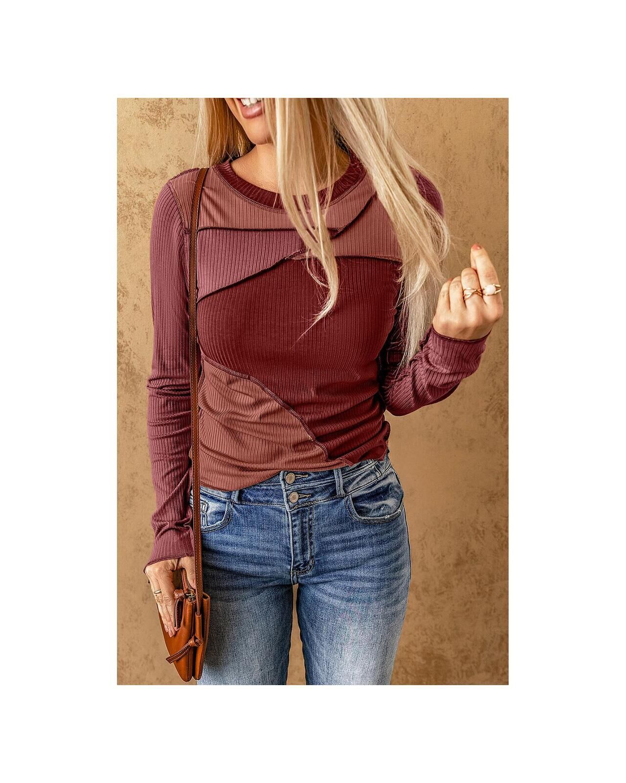 Azura Exchange Color Block Ribbed Knit Top with Exposed Seams