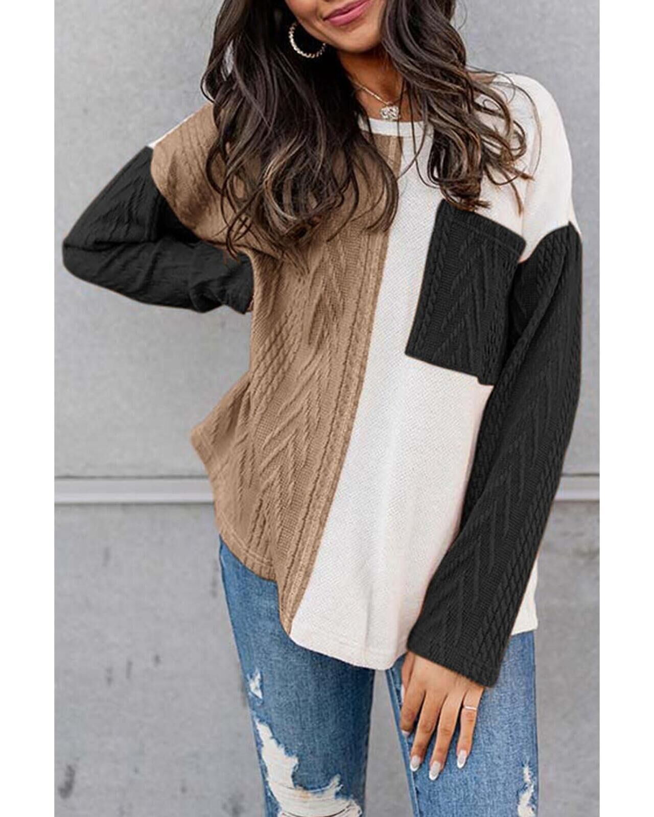 Azura Exchange Colorblock Knit Top with Chest Pocket
